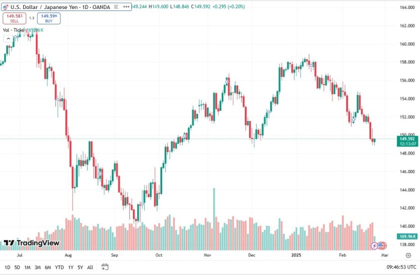 Për sa kohë USD/JPY do të tregtohet mbi vlerën 149 trenda e fillim javës do të jetë rritëse me target 149.6, reagimi pas së cilës do të jetë negativ. Tregtimi nën vlerën 149 hap rrugën për thellim të rënies drejt suportit 147.6.