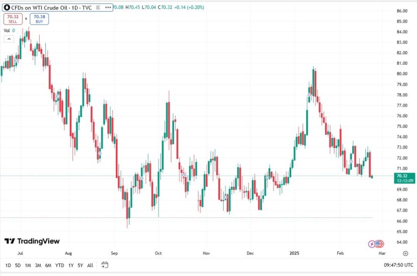 Për sa kohë CRUDE OIL do të tregtohet nën vlerën 73.5 trenda do të jetë negative me target 78.86, reagimi negativ ndaj së cilës e thellon rënien drejt suportit 66.65.