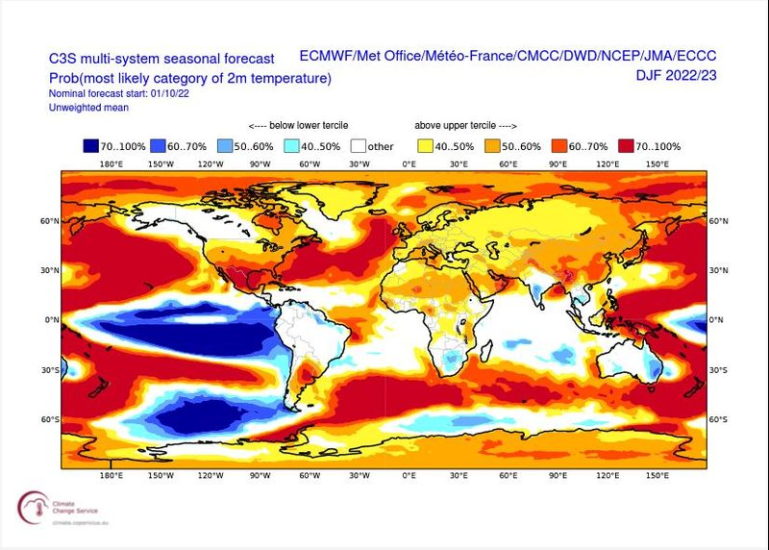 Shkencëtarët në Shërbimin e Ndryshimeve Klimatike Copernicus, i cili përditësoi perspektivën e tij sezonale të enjten, thanë se temperaturat ndoshta do të jenë dukshëm mbi normale gjatë sezonit të pikut kur pwrdoret më shumë ngrohja, midis dhjetorit dhe shkurtit.