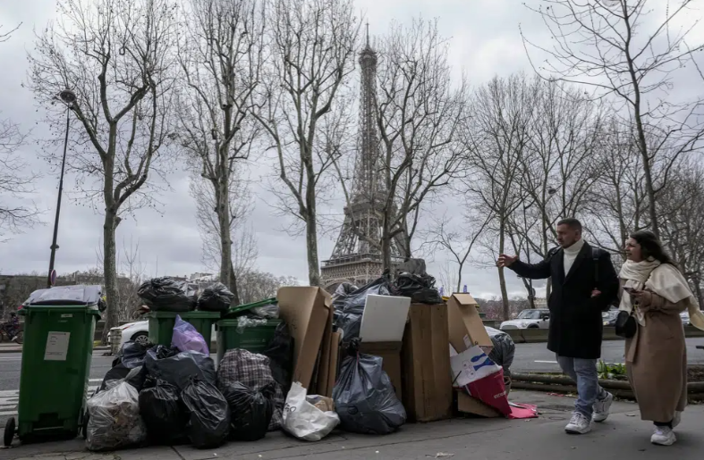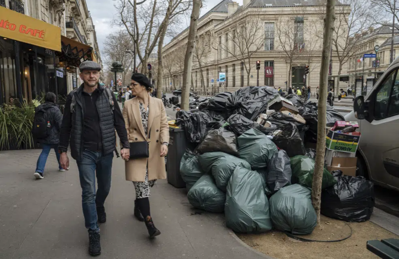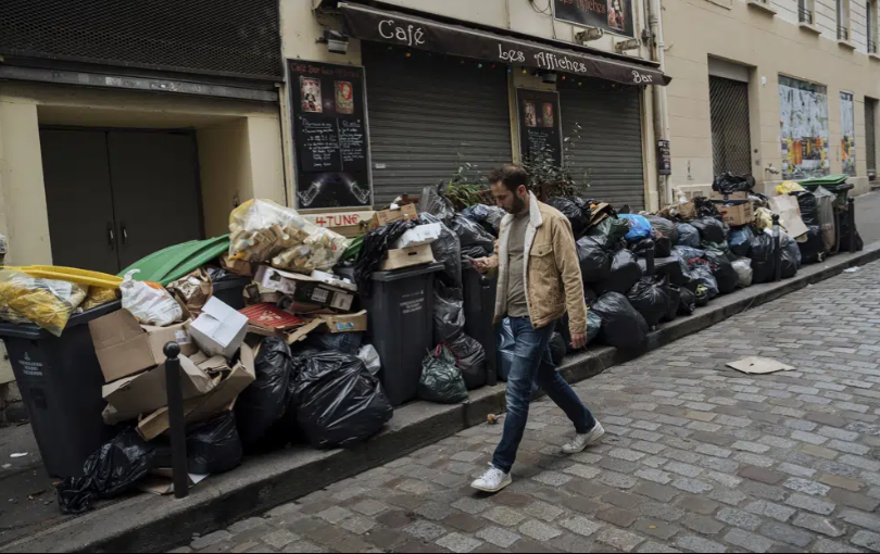 Qyteti i madhështisë po humbet shkëlqimin e tij me tonelatat e mbeturinave të grumbulluara në trotuaret e Parisit ndërsa punonjësit e kanalizimeve janë në ditën e dhjetë të grevës.