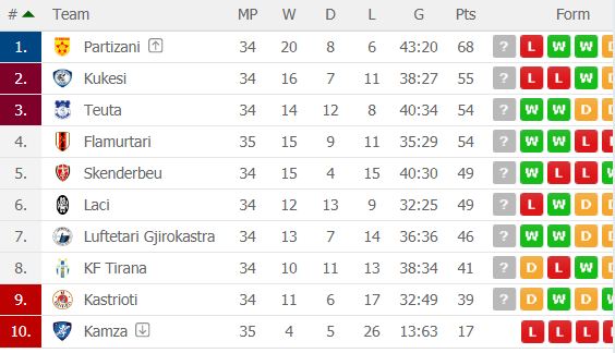 E kundërta është situata te Tirana, që javët e fundit e ka komplikuar shumë situatën në renditje. Kastrioti është afruar 2 pikë dhe skuadrës së trajnerit Ardian Mema i duhet me çdo kusht të mos humbë në Laç. Problemi është se Laçi lufton për një vend në Ligën e Europës dhe do të kërkojë me ngulm fitoren. Nëse Tirana humb dhe Kastrioti rival mund Teutën në ndeshjen tjetër, skuadra kryeqytetase është me një këmbë në Kategorinë e Parë. Por edhe krutanët nuk e kanë të lehtë, sepse durrsakët duhet të ruajnë vendin e tretë. Kjo javë vendos shumë në lidhje me skuadrën që bie nga kategoria, edhe pse jo matematikisht. Tiranës i duhet patjetër ta mbajë prapa Kastriotin në renditje dhe mund ta bëjë këtë gjë edhe më një barazim në Laç, pasi ka golaverazh më të mirë. Bardheblutë gabuan në ndeshjen direkt me krutanët dhe nuk u falet një gabim i dytë, por gjithçka do ta tregojë fusha.