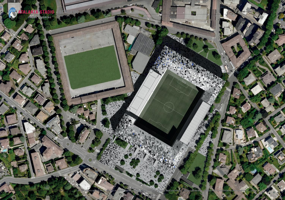 Edhe Atalanta po avancon me punimet për stadiumin e ri. Duke parë ecurinë në vitet e fundit, ku ekipi ka siguruar pjesëmarrjen në Kupat e Europës, ka lindur njëkohësisht nevoja për një stadium të standardeve ndërkombëtare. Pas fitores me Udinezen filloi shembja e njërës prej tribunave anësore. Atalanta e ka rindërtuar stadiumin e saj më disa faza, ku fillimisht u rikualifikuan dy tribunat kryesore, ajo qendrore dhe ballorja. Tashmë si fazë e fundit do të jetë rindërtimi i tribunave prapa portave. “Atleti Axurri” pritet të jetë gati vetëm pas dy vitesh, ku të ketë përfunduar rindërtimi nga e para i të dy tribunave.