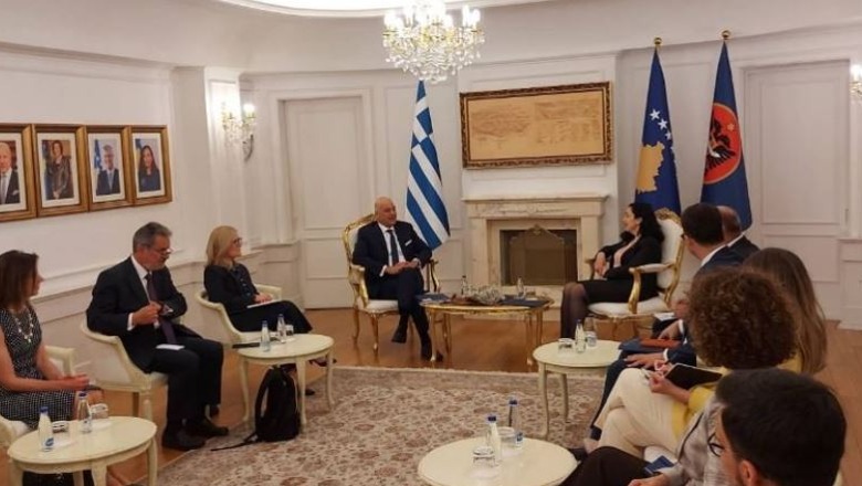 Ministri i Jashtëm grek, Nikos Dendias zhvilloi sot një vizitë zyrtare në Kosovë ku u prit nga Presidentja Vjosa Osmani.