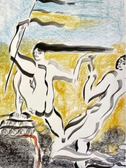 Ajo vizaton një grua që mposht armikun, të simbolizuar nga një gjarpër.