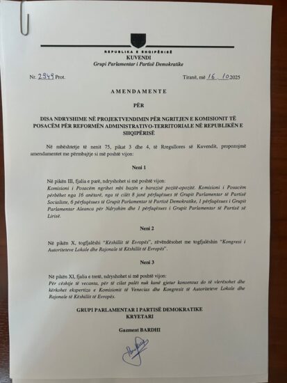 PD kërkon barazinë në komisionin e Administratives dhe Territoriales (dokumenti)