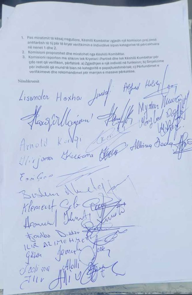 Dokumenti është firmosur nga 17 anëtarë të Këshillit Kombëtar të PD, të cilët kërkojnë që platforma të merret në shqyrtim dhe të diskutohet në mbledhjen e sotme.