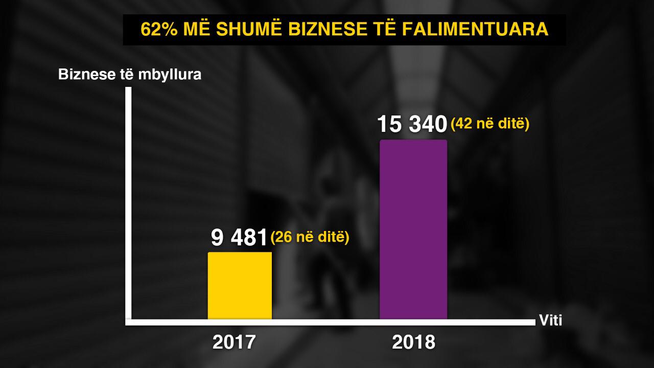 Partia Demokratike nëpërmjet këshilltarit për Çështjet Ekonomike, Dorian Teliti bëri të ditur se vetëm gjatë vitit 2018 rezulton se kanë falimentuar mbi 15 mijë biznese, që sipas llogaritjeve të saj i bie 62% më shumë se në vitin 2017.