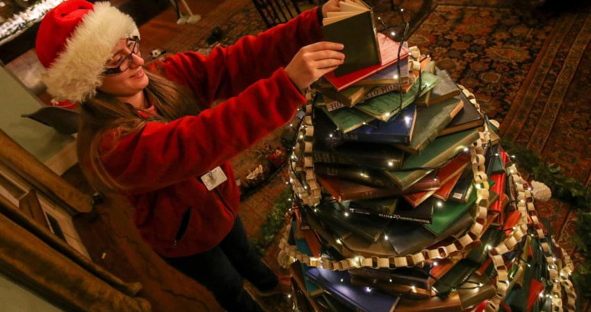 A ju ka rastisur të shihni një pemë Krishtlindjesh krijuar vetëm me libra? E ka bërë një vajzë në Angli dhe fotoja është shkëputur nga fotografi Steve Parsons/PA