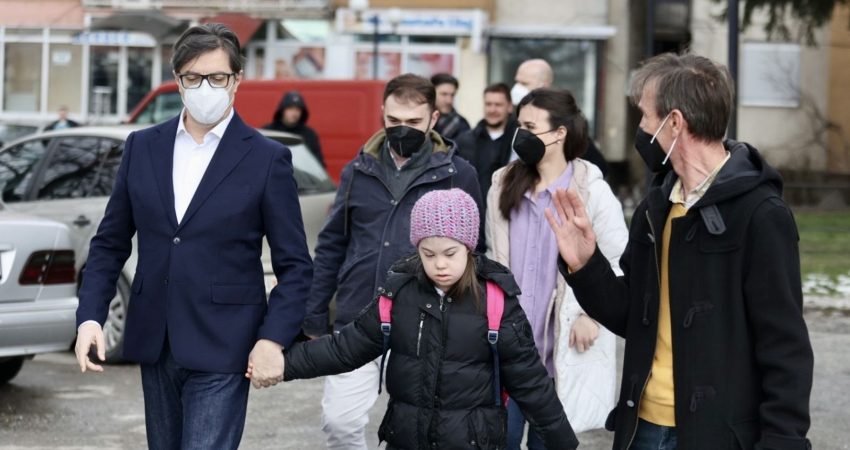 Presidenti i Maqedonisë së Veriut përcolli në shkollë një vajzë 11-vjeçare me sindromën Down, pasi dëgjoi se po bullizohej.