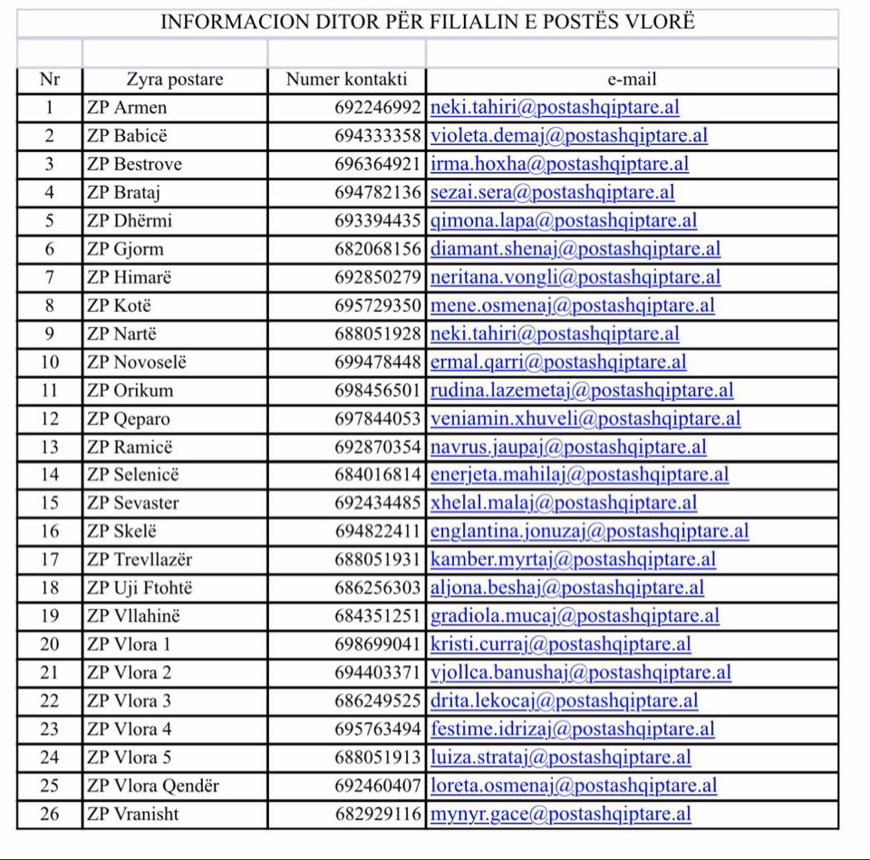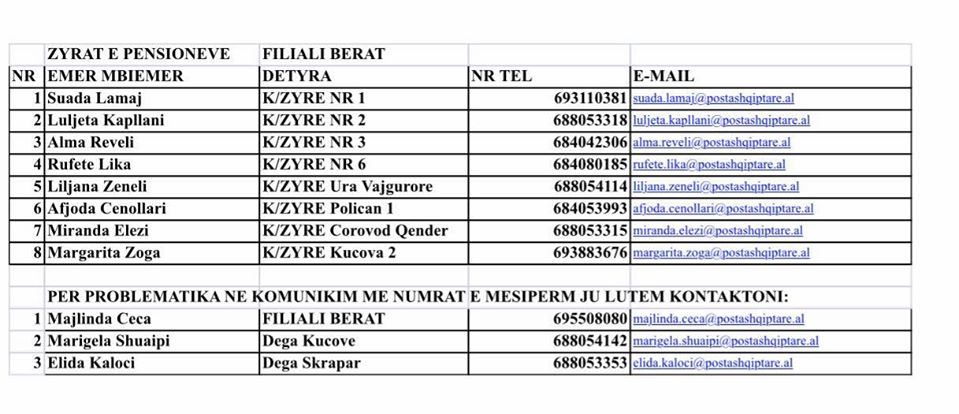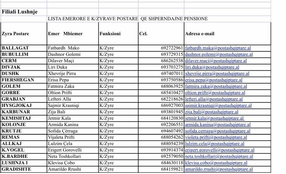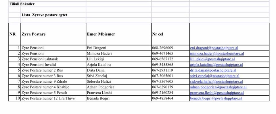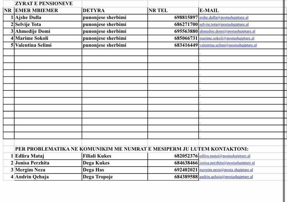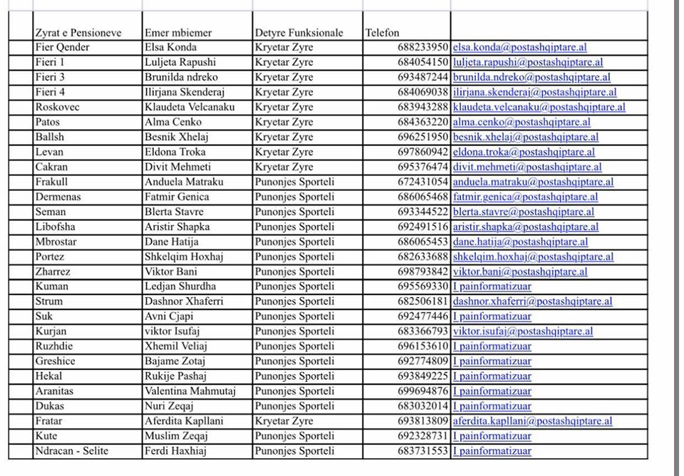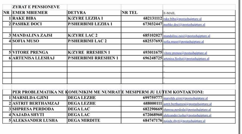 “Duke marrë shkas nga zhvillimet e fundit, mbi njoftimin e mbylljes së zyrave postare të pensioneve dhe masën e marrë nga Posta Shqiptare për shpërndarjen e pensioneve në shtëpi, është vënë re se shumica e të dhënave të kërkuara nuk janë të sakta.