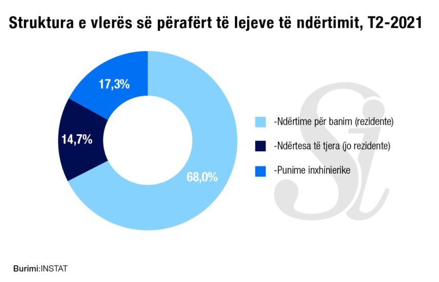 Sipërfaqja e lejeve të ndërtimit miratuar për ndërtesa të reja, në tremujorin e dytë 2021, është 544.127 m 2 , nga 322.294 m 2 miratuar në tremujorin e dytë 2020, duke shënuar një rritje prej 68.8%.