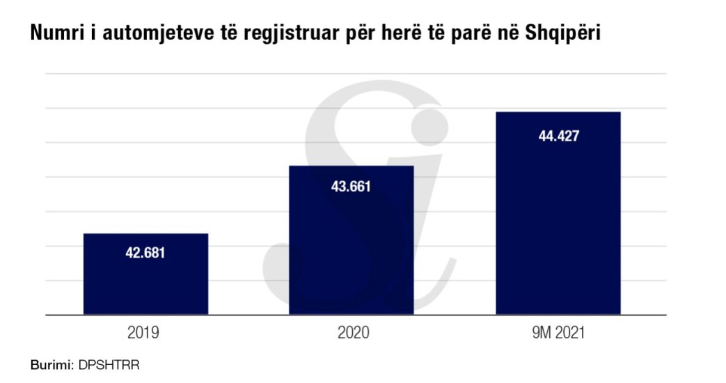 Për 9 muajt e parë të vitit 2021, në Shqipëri u regjistruan 52.357 automjete të reja sipas të dhënave nga Drejtoria e Përgjithshme e Shërbimeve të Transportit Rrugor (DPSHTRR).