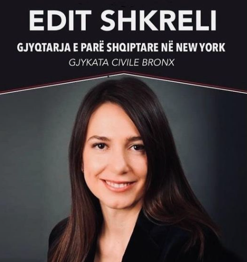 Nga Gazeta Si- Për herë të parë, një shqiptare do jetë pjesë e Gjykatës së New York. Edit Shkreli, e punësuar në Gjykatën Civile të Bronx, tani është gjykatësja e parë shqiptare në Neë York.