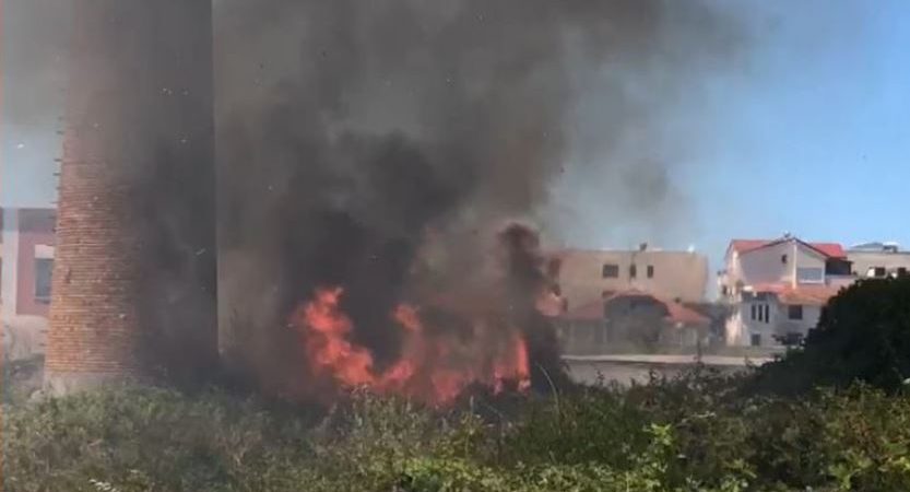 Gazeta Si – Ish-fabrika e qelqit në Kavajë është përfshirë nga flakët në një sipërfaqe të konsiderueshme pranë zonës së banuar.