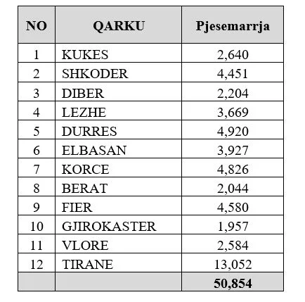 Numri më i madh i votuesve u regjistrua në Tiranë me 13,052 pjesëmarrës, e ndjekur nga Durrësi (4,920) dhe Korça (4,826).