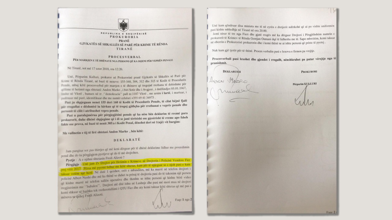 Sipas tij, në datën 17 tetor Andon Marko ka deklaruar në prokurori se me Fredi Alizotin, dëshmitarin e rremë, është takuar vetëm 1 herë, pasi i është kërkuar në 1 qershor nga drejtori Albert Nushi.