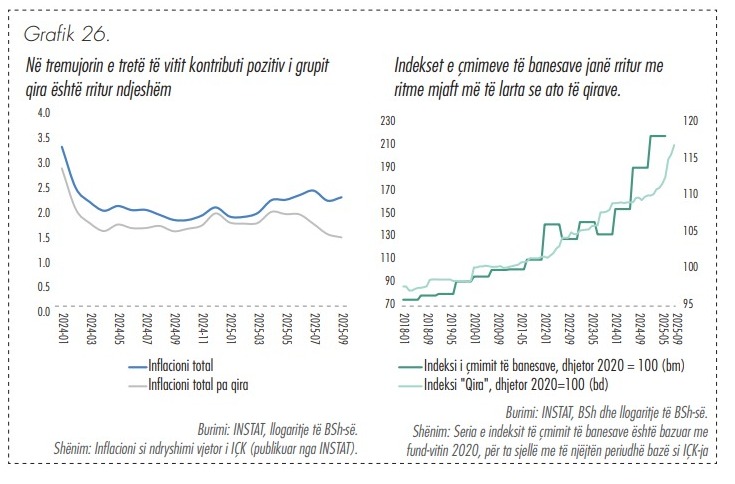Sipas shifrave nga Banka e Shqipërisë, inflacioni i kësaj kategorie arritit në 5.8% gjatë tremujorit të tretë të vitit, trefishi i mesatares së muajve paraardhës.