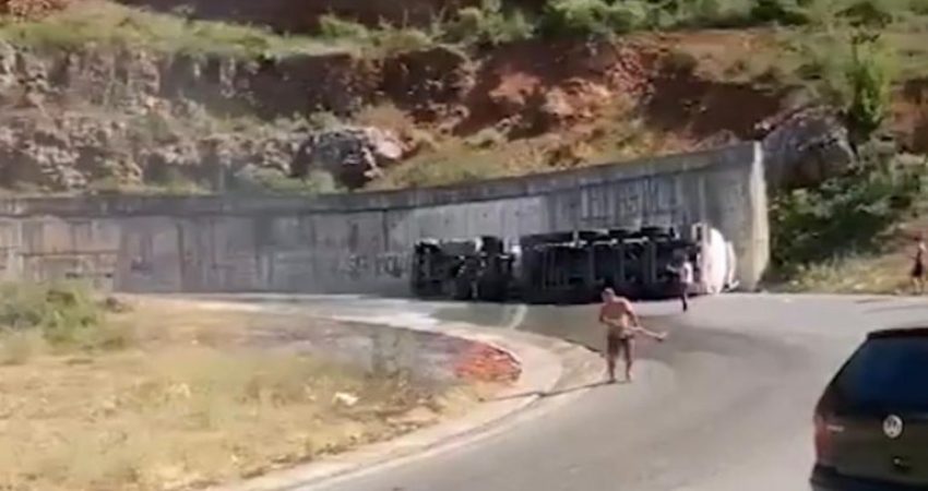 “Rreth orës 16:00, në aksin rrugor Prrenjas-Qafë Thanë, shtetasi moldav A.B., duke drejtuar një autobot të ngarkuar me naftë, ka humbur kontrollin dhe për pasojë autoboti është përmbysur, duke shkaktuar rrjedhje të naftës në rrugë.
