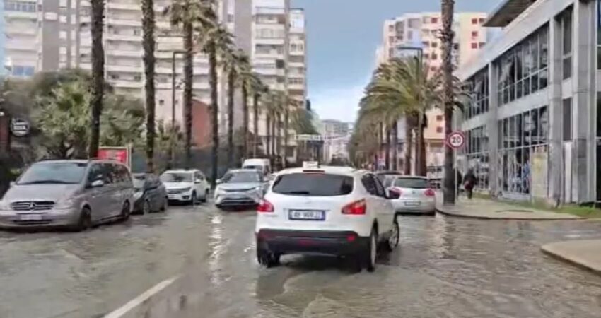 Mësohet se niveli i ujit ka kaluar mbi trotuare, duke vështirësuar lëvizjen e automjeteve dhe këmbësorëve.