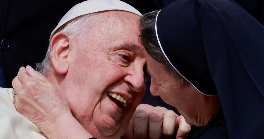 Papa Françesku përshëndetet nga një murgeshë në ditën e audiencës së përgjithshme javore, në sheshin e Shën Pjetrit në Vatikan.