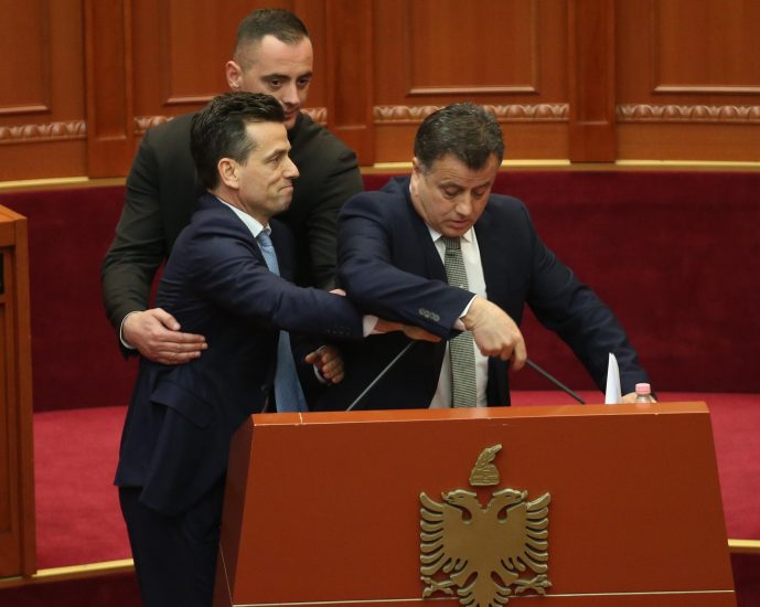 Nga Gazeta ‘Si’- Deputeti demokrat Flamur Noka është përplasur në Kuvend me deputetin Agron Shehaj, pasi ky i fundit bllokoi foltoren.