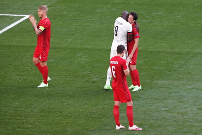 Duartrokitje të zjarrta nga tifozët danezë, por edhe nga ata kundërshtarë. Në minutën e 10-të loja u ndal për të respektuar lojtarin që disa ditë më parë pësoi një arrest kardiak, duke mbajtur në ankth gjithë botën e futbollit, por për fat të mirë ia doli.