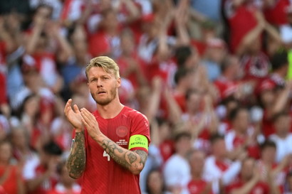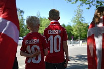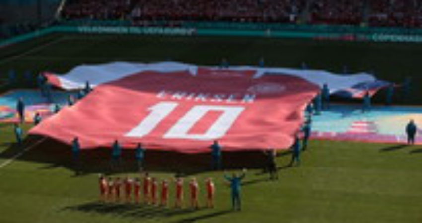 Emocione dhe afeksion i madh për futbollistin e Danimarkës gjatë ndeshjes me Belgjikën. Fanella e tij me numrin 10, por në një version gjigant, është shfaqur në fushën e blertë.