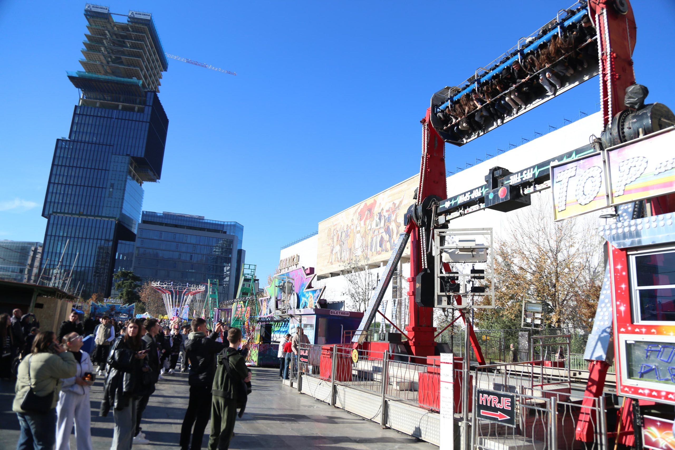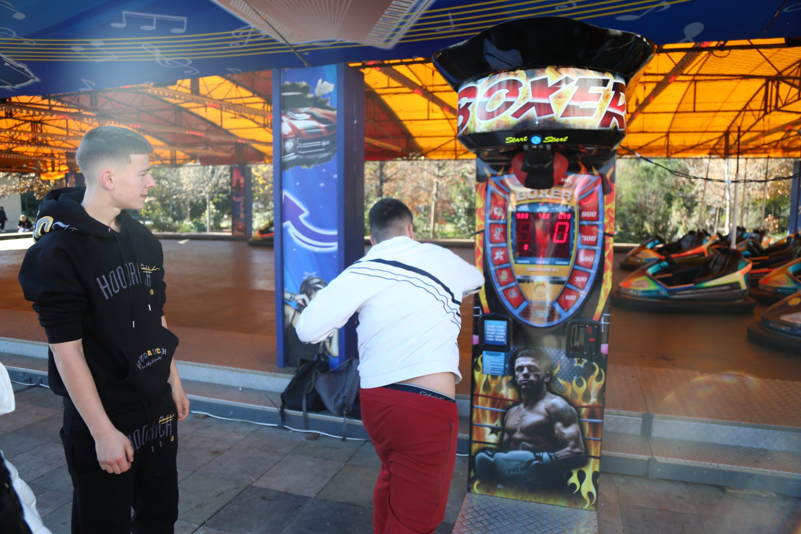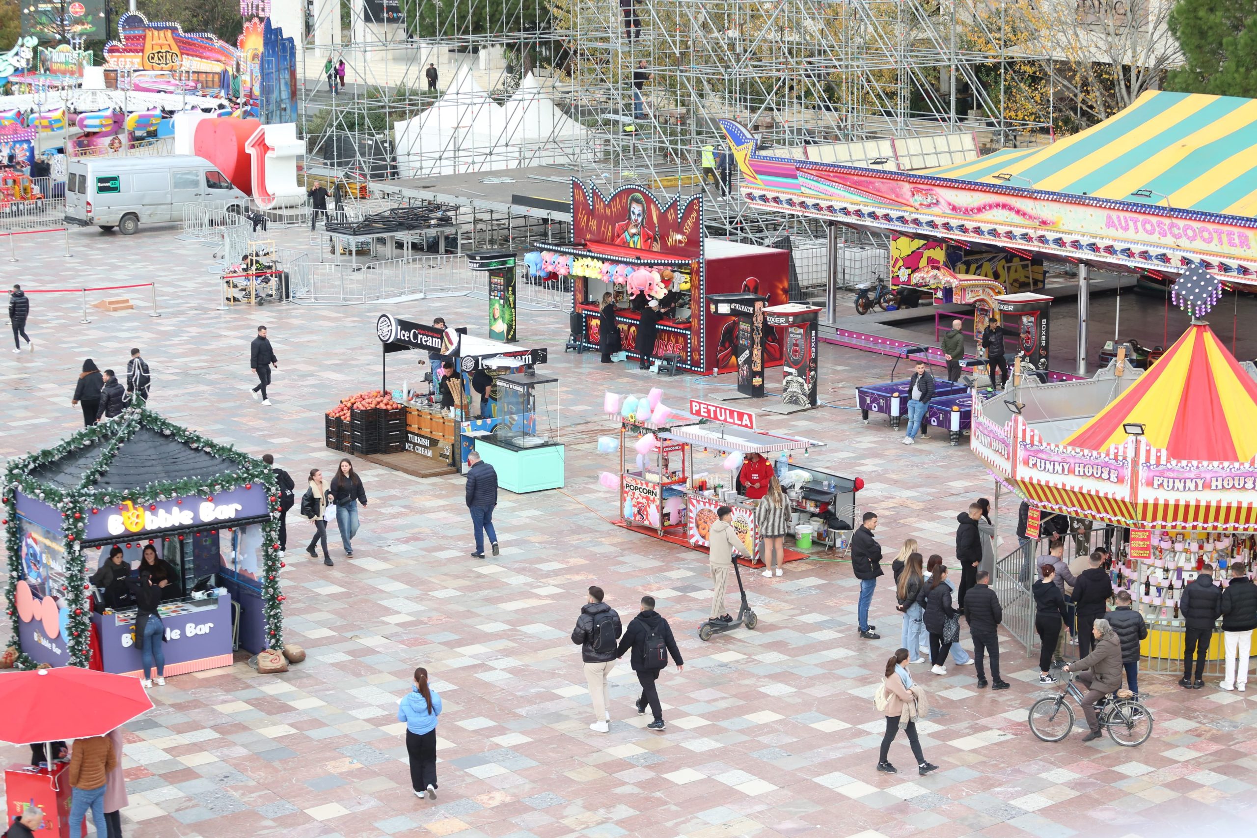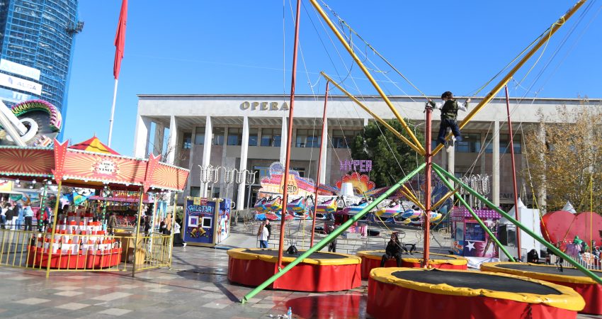 Hedh sytë përreth dhe gjëja e parë që tërheq vëmëndjen nisur dhe nga zhurma që shkakton është boksi mekanik i matjes së grushtit. Të rinjtë llërë përveshur që marrin vrull ta godasin njëri më fort se tjetri, janë rreshtuar dhe mezi presin t’ia ngjeshin fort. Ngjitur me të gjendet loja e fatit, me rrathët të cilët rrallë ndonjëhërë qëllojnë të të japin ndonjë shishe shampanjë. Si duket , prandaj dhe aty ka pak njerëz. Pak më tutje janë dy lodra të mëdha gjigante dhe në mes tyre karuseli ngjyrë rozë që është pjesë e qendrës tashmë çdo ditë. Përpiqem të shquaj një lloj sistemi të të vendosurit të lojëravë apo ndonjë kriter por nuk ia dal. Aty ku ka lodra, ka dhe pije, ka dhe petulla, ka dhe gështenja por edhe fara të zeza. Nis të eksploroj sheshin pak më në qëndër të tij. Përsëritet sërish e njëjta rradhë, petulla, akullore, gështenja dhe makineri të mëdha si në Disney Land të ngjeshura njëra me tjetrën. Pyes dikë nga punonjësit nëse ka rrezik që mekanizmat të ndeshen, por ai më sheh me mospërfillje, sikur e pyes për ndonjë jashtëtokësor.