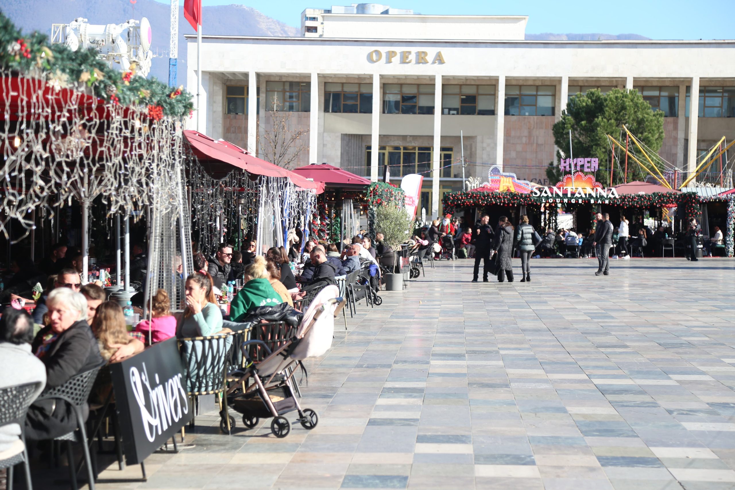 Dhe duke menduar risitë e këtij viti kupton që e vetmja risi janë këto pemë shtatshkurtëra të vendosura përreth pemës mëmë. E meqë jemi te risitë, sheshi festiv prej vitesh është “fotokopje” e vetes. Ajo që ndryshon janë vetëm logot e bizneseve dhe kafeneve që e rrethojnë atë. Janë bizneset dhe kafenetë më në zë në Tiranë. Edhe kjo si duket e ka një shpjegim. Një prej kamarierëve pohon se për një muaj paguhen 10 deri në 15 mijë euro qera, Domosdo kjo shpjegon dhe çmimet e larta që ua ngjeshin klientëve për produkte krejt normale.