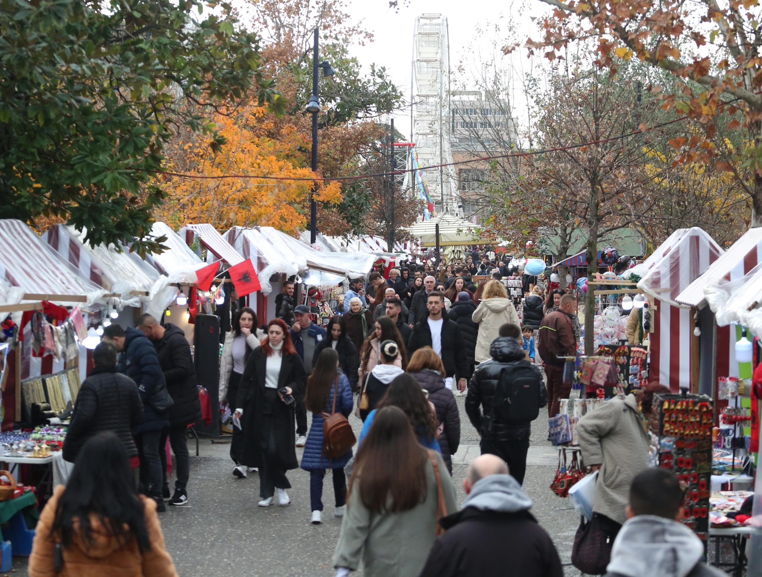 Në fillim gjen tezgën e veshjeve tradicionale shqiptare, pas saj punime të gdhendura në dru, diku pak më tutje një tregtar flamujsh dhe më pas shumicat e tezgave shesin bizhuteri nga Swarowski dhe Bulgari, (sigurisht imitime) dhe lodra kineze. I çuditshëm është fakti se në një treg krishtlindjesh i cili simbolizon një festë, shiten bizhu fallco dhe lodra kineze të cilat i gjen lehtësisht pak metra më tutje në tregun çam, madje në çdo ditë të vitit. Gjithsesi çeshtje gustosh. Në tezgën e kostumeve tradicionale, një djalë në moshë të re është strukur diku në cep të saj nga të ftohtët dhe vështron me njëfarë pesimizmi. I pyetur se a ia vlen kostoja e pagesës, në bazë të shitjeve të deritanishme, ai tund kokën dhe me zë të ulët pohon se jo, nuk ia vlen. –Por të shpresojmë çfarë do të ndodhë deri në fund të muajit- shton ai.