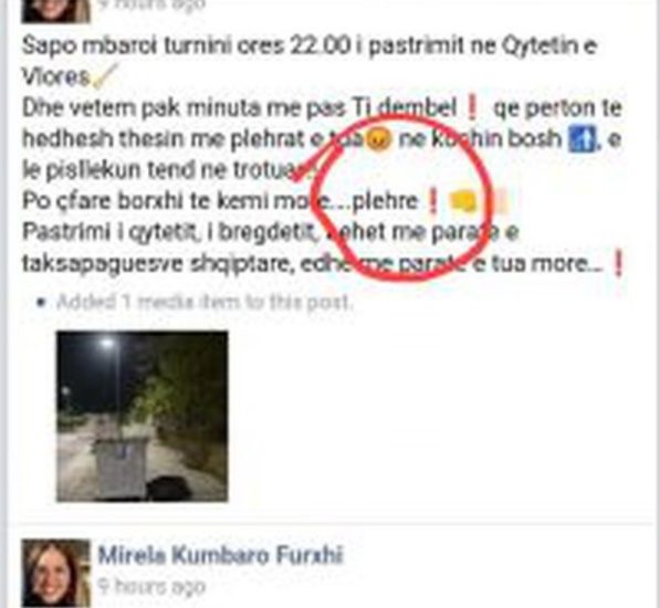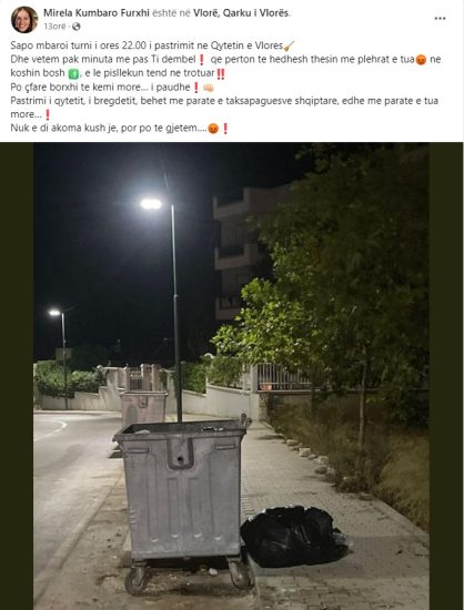 Në një postim të mëhershëm, ka qene edhe më e revoltuar, por që më pas ka korigjuar fjalën ‘plehrë’ kur i është drejtuar qytetarëve që nuk i hedhin mbetjet në kosha.