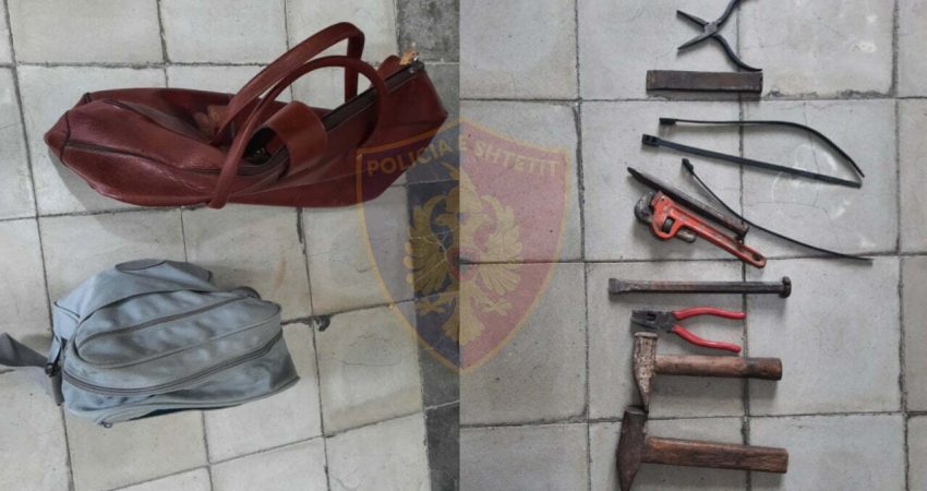 Dy hajdutët u kapën në flagrancë, ndërsa tentonin që të vidhnin banesën e Sh.Ç. Në cilësinë e provës u sekuestruan dy çanta me vegla të ndryshme që autorët përdornin për të hapur me thyerje derën e banesës.