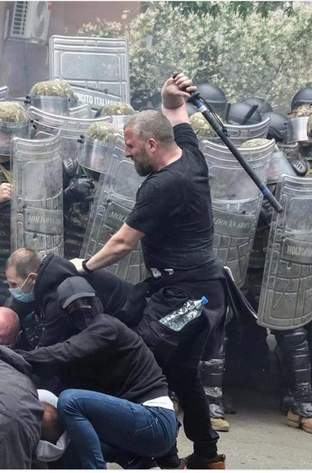 Mediat dhe rrjetet sociale kanë publikuar një foto të një personi që godet egërsisht me shkop forcat e KFOR në Zveçan. Ai është Dragan Smigiçin, një polic serb nga qyteti i Rudares në Serbi. Dragani nuk është shtetas i Kosovës.
