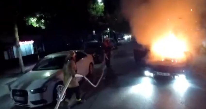 Polici i dehur shkakton aksident në Vlorë, makina shpërthen në flakë