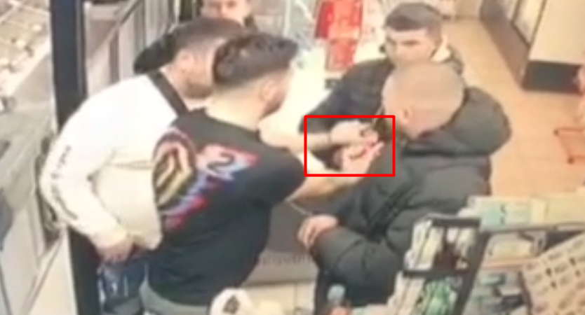 Në një moment, kur autori i dyshuar i ngjarjes ishte në radhë duke pritur që të paguante për çfarë kishte blerë, aty u ndodhën Jurgen Duka dhe një tjetër person, duke vendosur disa birra në banak me qëllim kalimin e tyre në kasë.