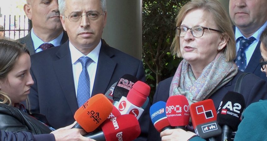 “Kam kënaqësinë që pata mundësinë të pres Ambasadoren e Republikës Federale të Gjermanisë, me të cilën takohem në harkun e pak javëve, për herë të dytë në mjediset e Policisë së Shtetit. Sot jemi te Task Forca Speciale ku sapo nënshkruam një protokoll për marrjen e një ndihme të konsiderueshme, e cila i adresohet Task Forcës “Forca e Ligjit”, pra i adresohet luftës kundër krimit të organizuar. Ndërkohë që para pak javësh, ne patëm mundësinë që të mirëpresim një paketë tjetër të rëndësishme ndihme që i adresohej kufirit.