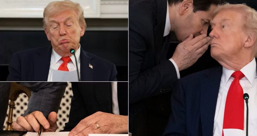 Gazeta Si – Gjatë një takimi zyrtar në Shtëpinë e Bardhë të fokusuar në situatën në Lindjen e Mesme, senatori Marco Rubio i afrohet Presidentit Donald Trump me një gjest të shpejtë, por të qëllimshëm.