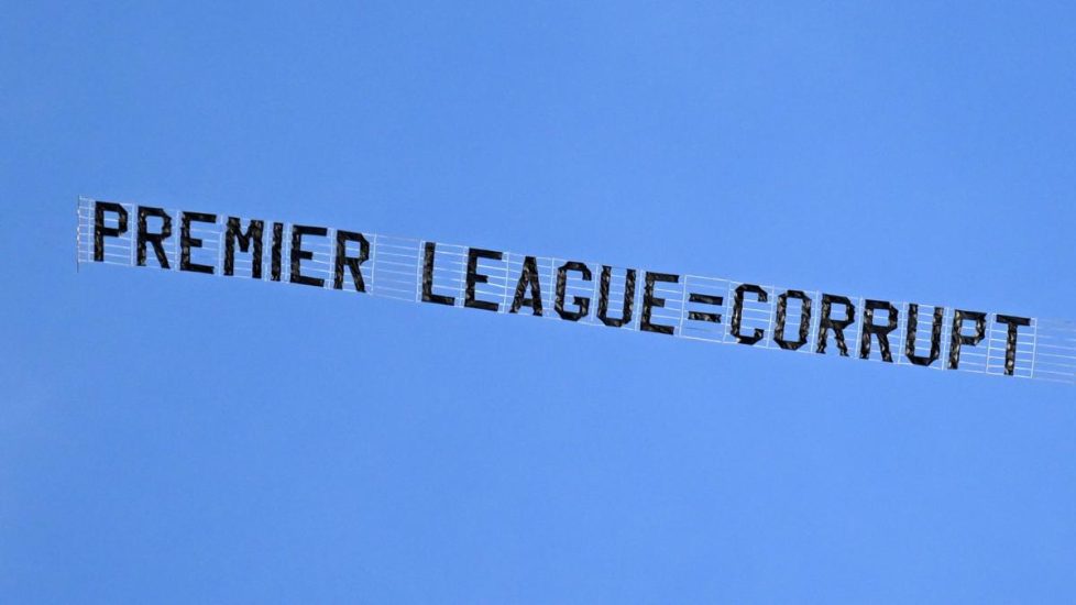 Premier Liga e korruptuar! Mesazh proteste nga ajri gjatë sfidës mes Sitit dhe Liverpulit