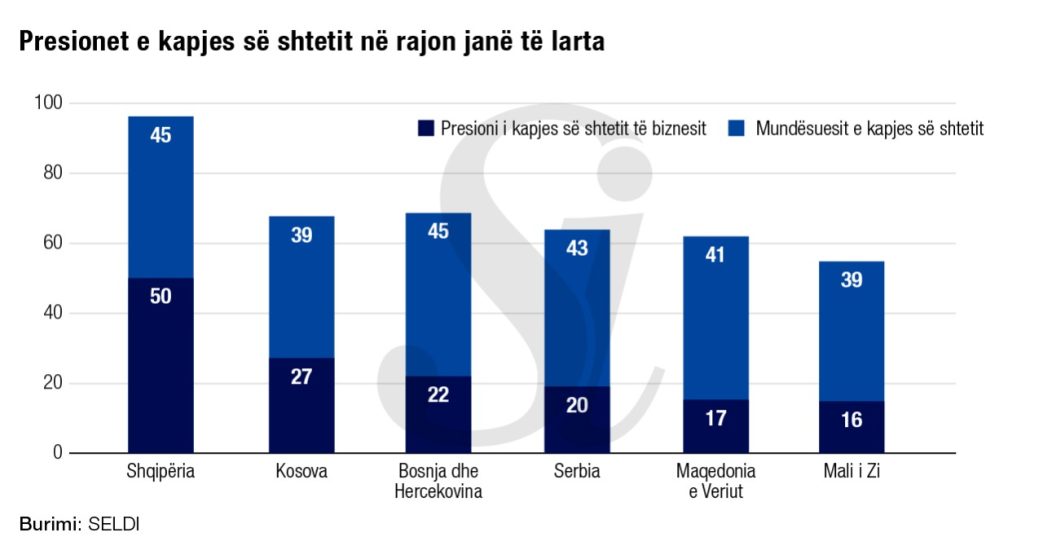 Presioni i kapjes së shtetit nga bizneset në Shqipëri është më i larti në rajon, sipas një raporti të fundit të SELDI, rrjeti i Europës Juglindore për Lidership, Zhvillim dhe Integritet. Presioni i kapjes së shtetit nga bizneset në vend vlerësohet me 50 pikë, shumë më i lartë sesa vendet e tjera të rajonit. Shteti i dytë pas nesh është Kosova, që e ka treguesin 27, ndërsa më të ulët e ka Mali i Zi në 16.