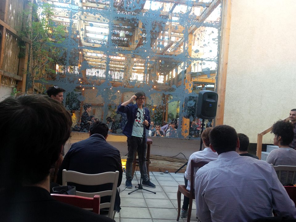 Pas leximeve të gjithë autorët dhe publiku pjesëmarrës ishin të ftuar të ndiqnin performancën live të artistit serb që jeton në Kroaci, Ilija Ludvig në një mjedis të çelur rishtazi në Prishtinë “Menza e Ramiz Sadiku”. Siç më tregoi gjatë një komunikimi të shkurtër një prej pjestareve të familjes që aktualisht e ka këtë pronë, kjo ka qenë mensa e punëtorëve në kohën e ish Jugosllavisë e ndërtuar që në vitet 60”. Punëtorët hanin aty dhe ndiqnin performanca në podium. Struktura është ruajtur me autentiken, por i janë shtuar elementë të modernitetit.