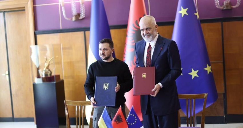 Ne nënshkruam Traktatin e Miqësisë dhe Bashkëpunimit ndërmjet Ukrainës dhe Shqipërisë. Ky dokument do të ndihmojë në forcimin e bashkëpunimit tonë me Shqipërinë dhe pozicionin e Ukrainës në Ballkan. Sot diskutuam gjithashtu nevojat e mbrojtjes së Ukrainës dhe prodhimin e mundshëm të përbashkëttë armëve. I jemi mirënjohës qeverisë dhe popullit shqiptar. Nuk do ta harrojmë kurrë qëndrimin e ngrohtë të shoqërisë shqiptare ndaj ukrainasve”, shkruan Zelensky.