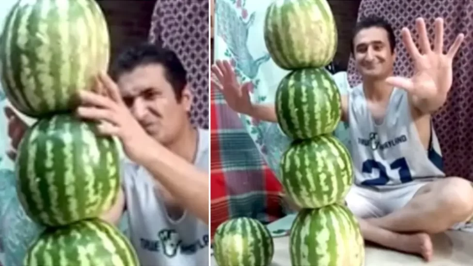 Një profesor i inxhinierisë civile nga Irani vuri në provë aftësitë e tij duke grumbulluar katër shalqinj vertikalisht dhe duke fituar një rekord botëror Guinness për përpjekjet e tij.