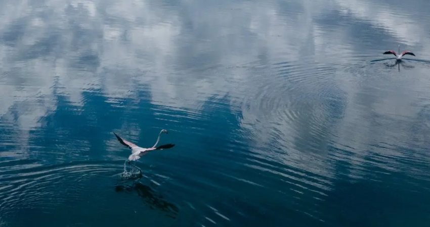 Ujërat e pastër të Nartës pasqyrojnë qiellin dhe një zog të madh të bardhë që del nga Adriatiku. “Është një pelikan dalmati”, thotë udhëheqësi im, Julian Hoffman.