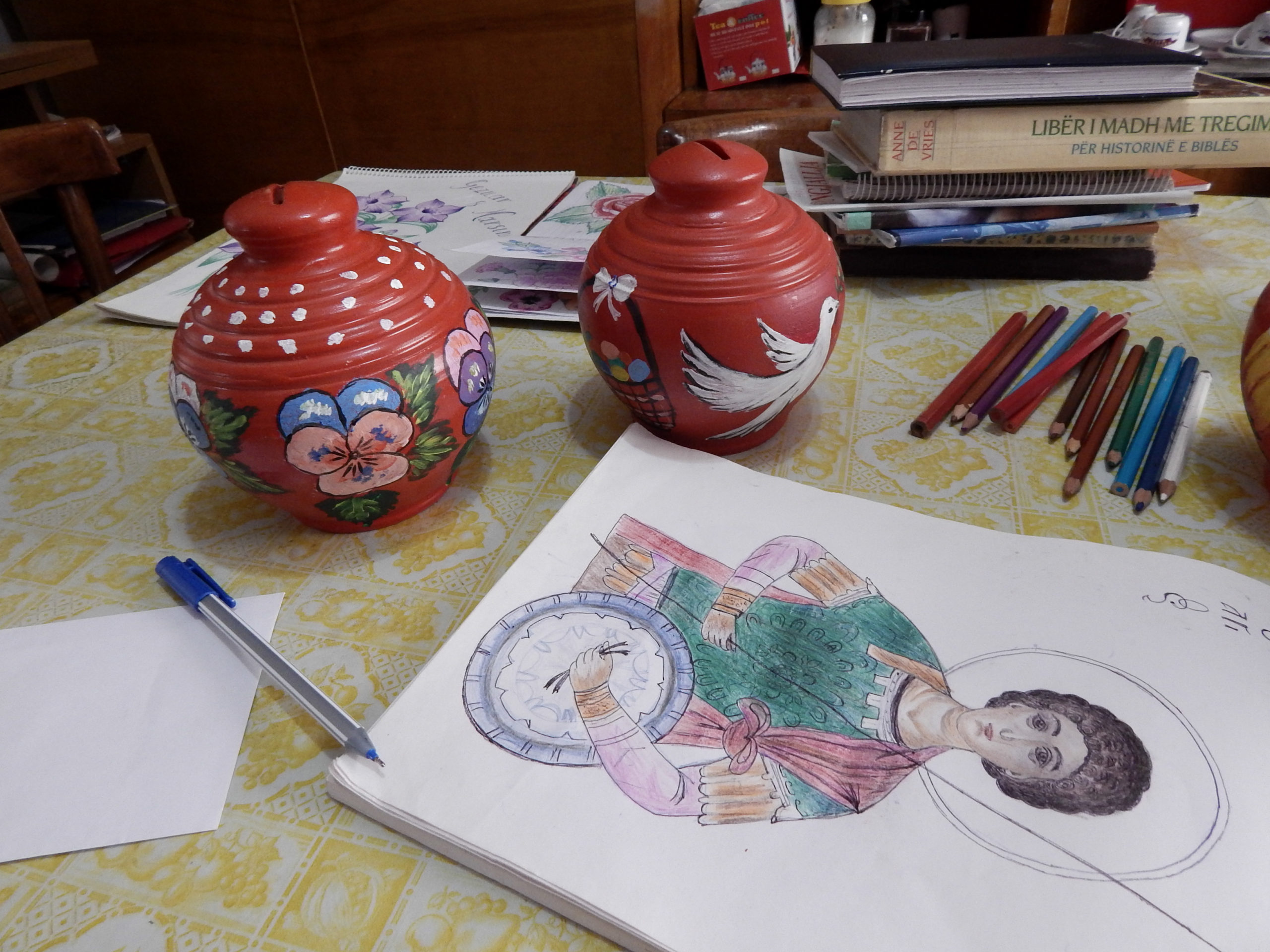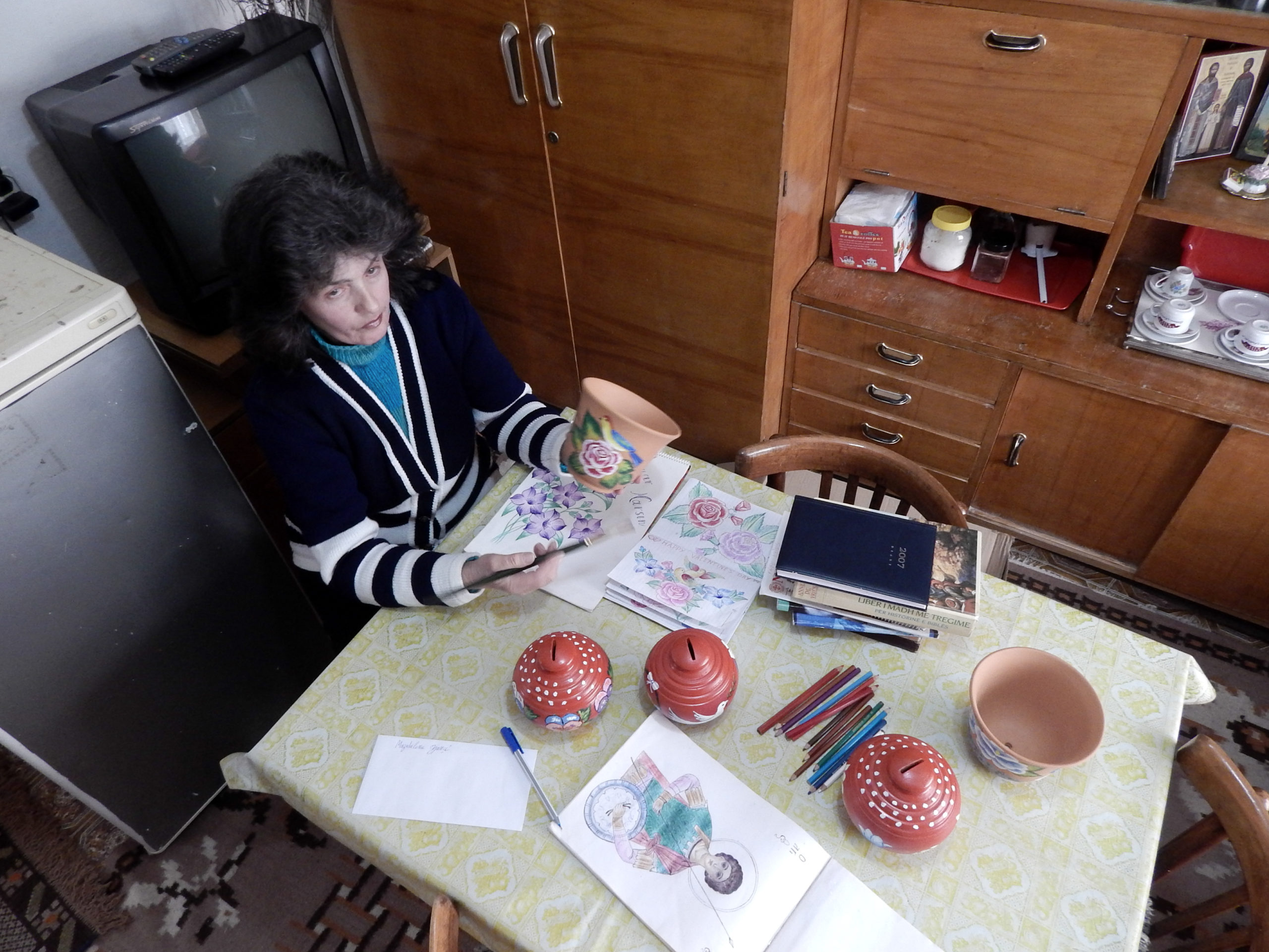 Një grua e dhënë pas leximit dhe jetës akademike Magdalena nuk ka mundur dot të realizojë ëndrrën e saj për t’u bërë mësuese, paçka se studimet për këtë degë i nisi në moshën 40 vjeçare, kurrë nuk ka reshtur së lëxuari. Duke qenë se në rini Magdalena ka punuar në fabrikën e qelqit, talenti në pikturë e ndihmon të fitojë të ardhura edhe sot. Stafi i organizatës Dorcas i siguron lëndën e parë dhe me to ajo krijon suvenire për festa të ndryshme si Krishtlindje apo Pashkë, e të cilat i shet dhe mund të marri disa të ardhura më shumë.