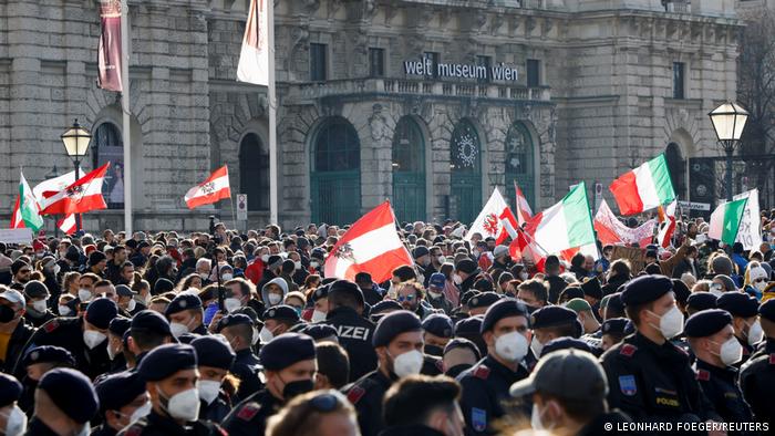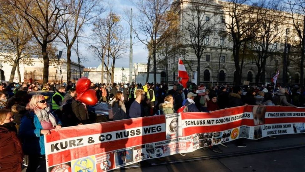 Mijëra protestues u mblodhën në kryeqytetin e Austrisë, Vjenë, pasi qeveria njoftoi një bllokim mbarëkombëtar për të përmirësuar rritjen e shpejtë të infeksioneve nga Covid-19 në vend.
