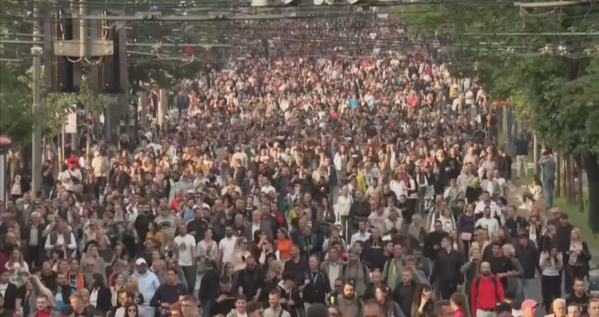 Protesta filloi jashtë ndërtesës së parlamentit serb përpara se mijëra të marshonin drejt ndërtesës së TV Pink në një zonë rezidenciale të Beogradit, e cila strehon gjithashtu ambasada dhe rezidenca të huaja.