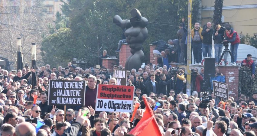 Ora 10.00 i gjeti protestuesit e opozitë të shpërndarë mes rrugëve para Parlamentit dhe sheshit para selisë së Partisë Demokratike, në pritje të daljes së Lulzim Bashës dhe drejtuesve të tjerë opozitarë.