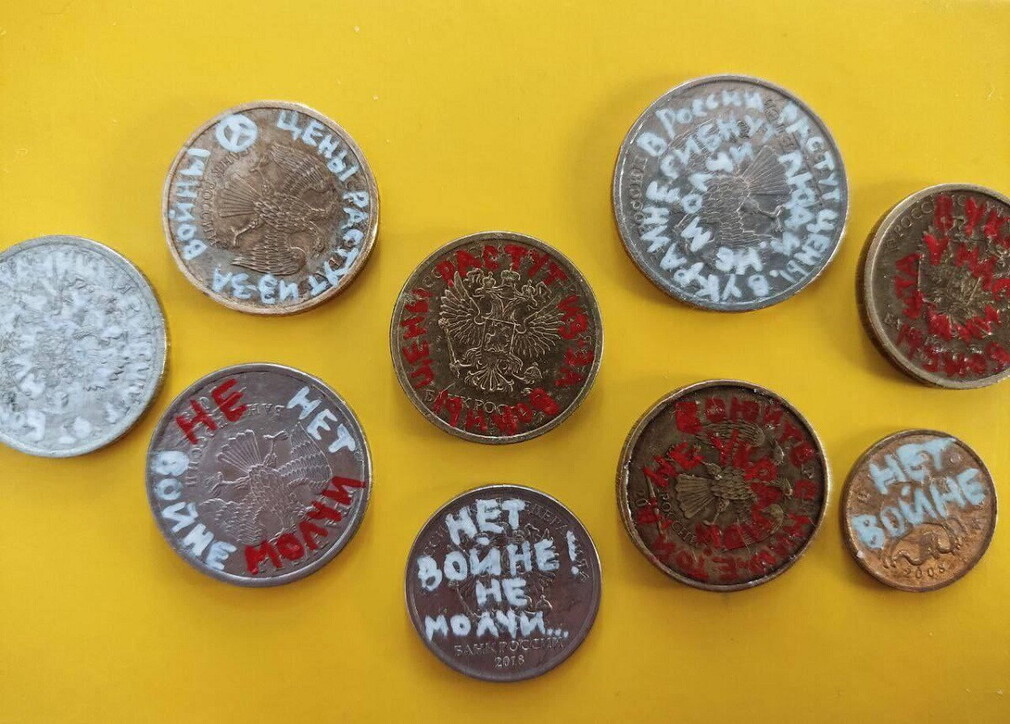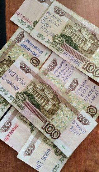 Kështu, pas shiritave jeshilë, po shpërndahen në Rusi kartmonedha të prerjeve të ndryshme, 50, 100, 200, 500, 2000 rubla, si dhe monedha, mbi të cilat është shkruar “Njet Voinje” (Jo luftës).