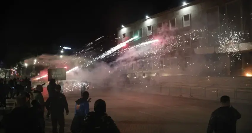 Policia ndërhyri disa herë duke përdorur gaz lotsjellës dhe ujë me presion për të shpërndarë turmën.