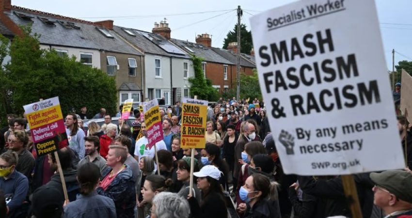 Mijëra protestues dolën në rrugë anembanë Mbretërisë së Bashkuar të mërkurën në mbrëmje pas raportimeve që policia po parashikonte demonstrata të ekstremit të djathtë në më shumë se 100 vende.